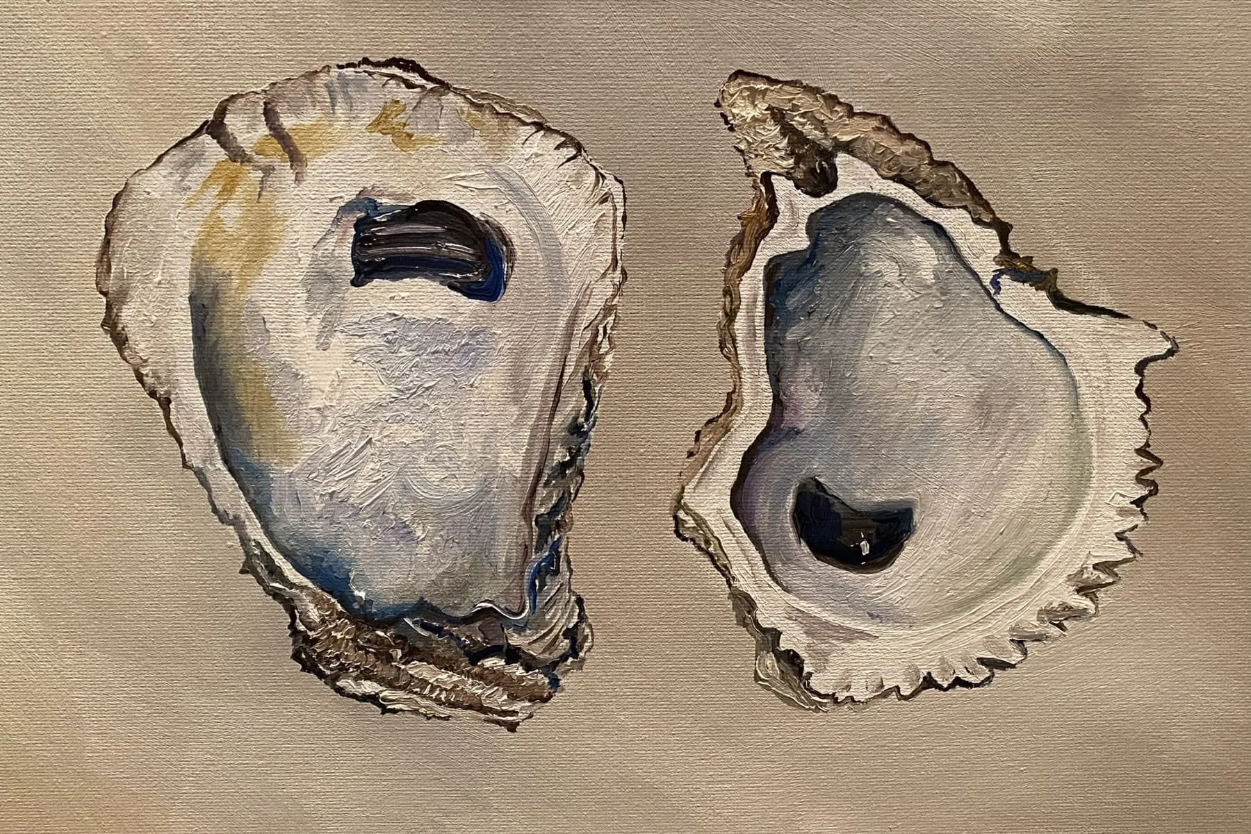 Aw shucks, my oyster art sells fast, but more originals are coming. Please feel free to contact me for your own special bivalve, with a custom background, size and grouping.